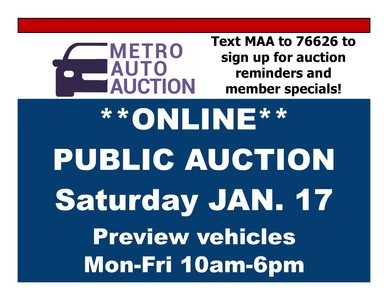 ONLINE auction on Saturday, JANUARY 17, 2026 will be ONLINE BIDDING ONLY!